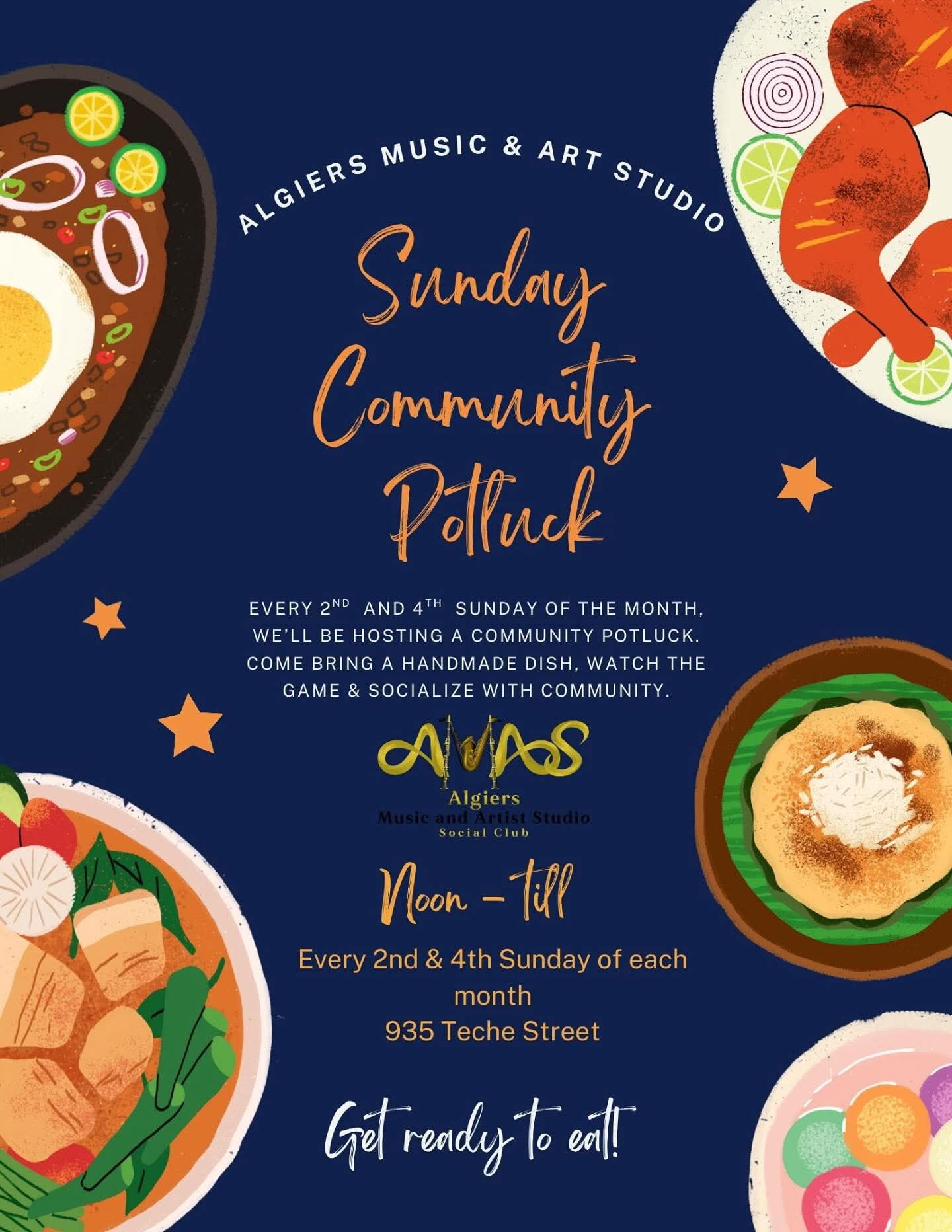 We operate a live music venue, art studio and community center in the heart of New Orleans’ West Bank. We provide music, arts and private education courses to the young people of our community through our AMAS Foundation. We are a community hub that serves the people of Algiers and the surrounding area.