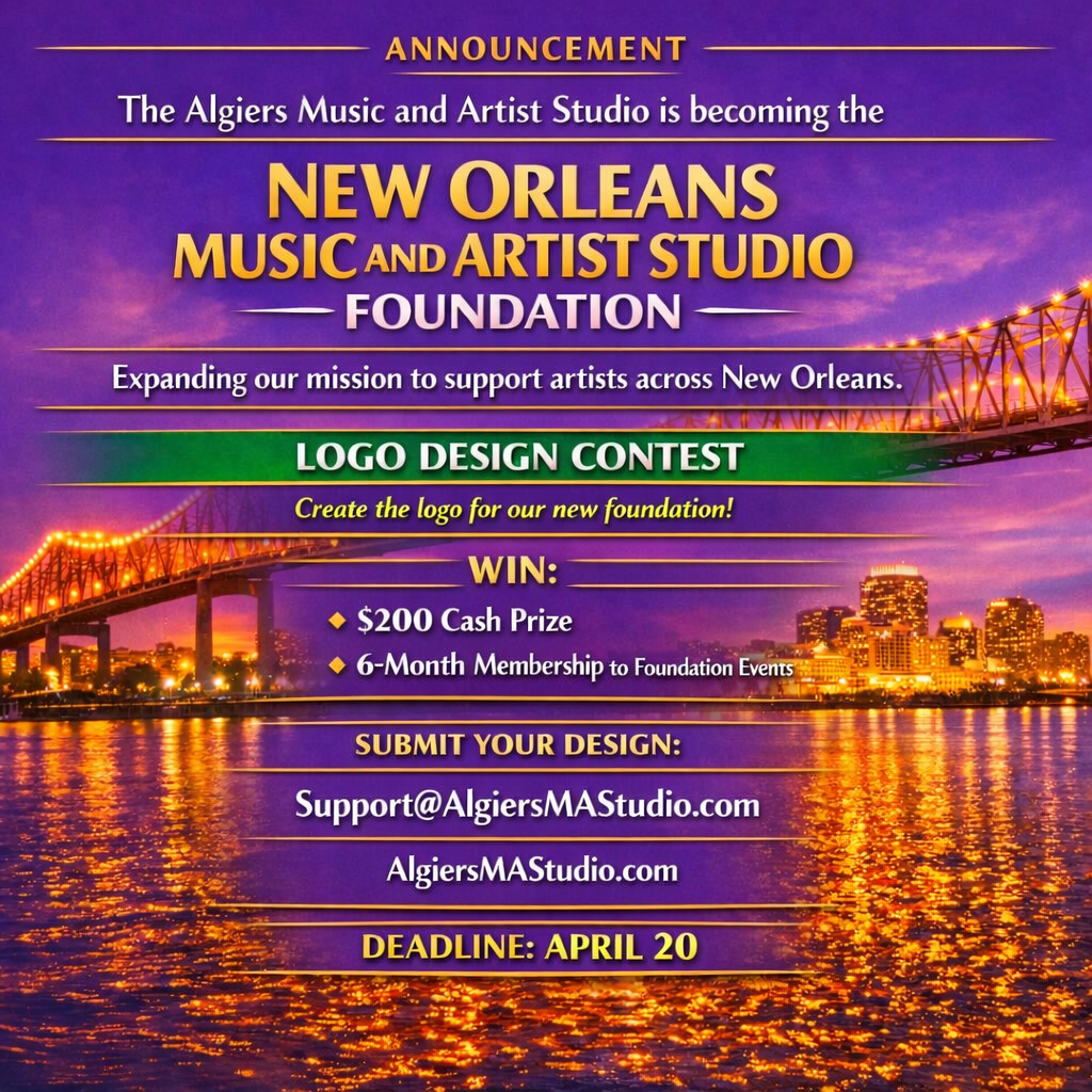 NOLA Music and Artist Studio Foundation is a Louisiana 501c3 corporation. Our mission is to empower the West Bank communities by fostering a vibrant and inclusive hub for music, arts, education and personal development. By offering a welcoming space for art and community, we help bridge the gap between the rich cultural heritage of New Orleans and its future.