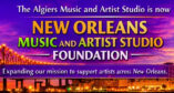 Algiers Music and Artist Studio Foundation is a Louisiana 501c3 corporation. Our mission is to empower the West Bank communities by fostering a vibrant and inclusive hub for music, arts, education and personal development. By offering a welcoming space for art and community, we help bridge the gap between the rich cultural heritage of New Orleans and its future.