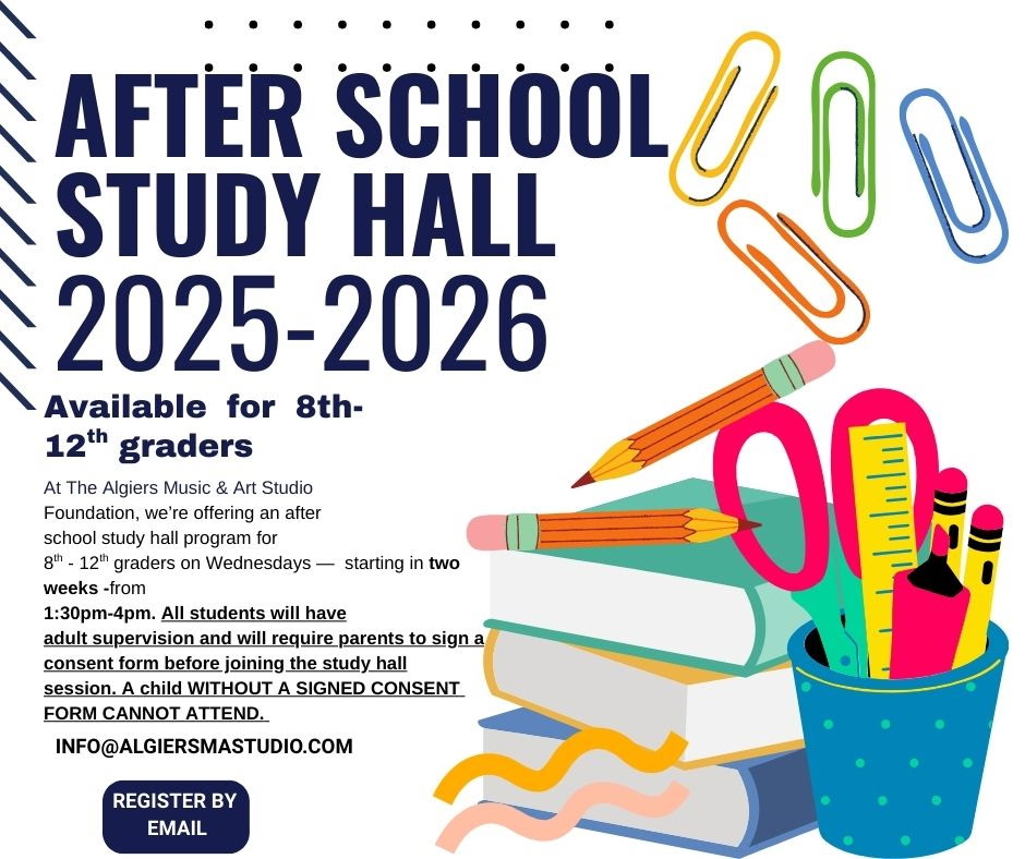 Register by email at info@algiersmastudio.com