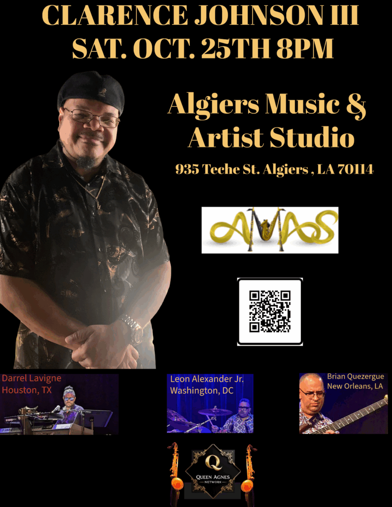 Brian Quezerque, a sought after New Orleans bassist, performs a variety of music genres and has performed with the likes of the Wild Magnolias, Kidd Jordan, the late Alvin Batiste, Clyde Kerr Jr. Clarence “Gatemouth” Brown and many others.